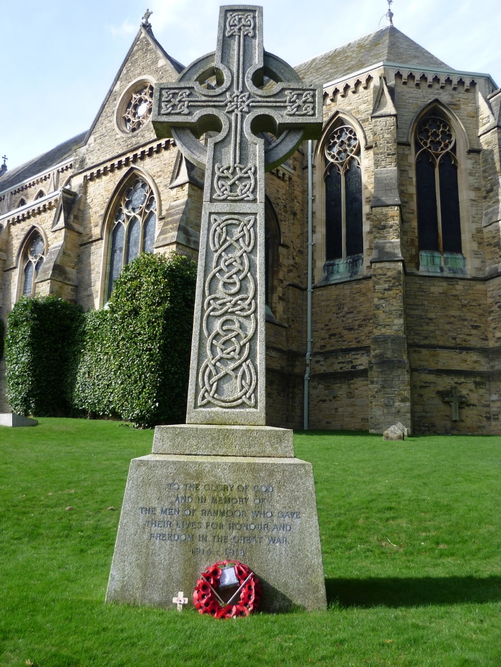 The memorial lists 58 men in the sequence of their deaths. They are also honoured on a brass tablet inside the church: “To the glory of God and in memory of the men of Ranmoor who gave their lives for honour and freedom in the Great War 1914-1918”. This tablet contains the same list of 58 men as on the stone memorial.